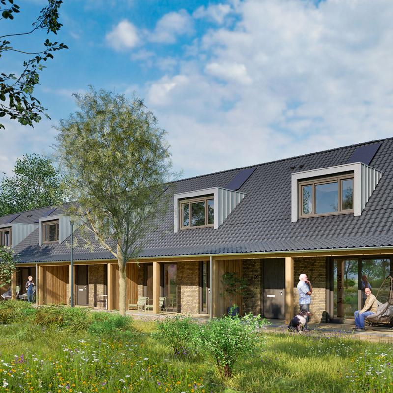 Doordat auto’s hier achter de woningen blijven, leef je echt in een groene omgeving. De levensloopbestendige woningen krijgen een royale veranda aan de voorzijde. Hier kunnen bewoners beschut buiten zitten én makkelijk contact maken met de buren. De rijwoningen kenmerken zich door de mee-ontworpen pergola aan de voorzijde en de grote puien met schuifdeuren op de koppen.