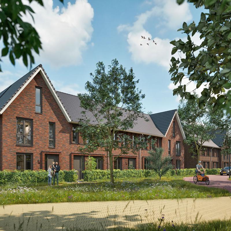 Doordat auto’s hier achter de woningen blijven, leef je echt in een groene omgeving. De levensloopbestendige woningen krijgen een royale veranda aan de voorzijde. Hier kunnen bewoners beschut buiten zitten én makkelijk contact maken met de buren. De rijwoningen kenmerken zich door de mee-ontworpen pergola aan de voorzijde en de grote puien met schuifdeuren op de koppen.